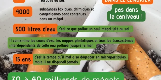 L’un des grands combats de Bormona Nature est la lutte contre la pollution liée aux mégots, en informant et sensibilisant les citoyens et élus sur leur dangerosité. Ces déchets, souvent jetés au sol, finissent dans les cours d’eau et contaminent les nappes phréatiques. Pour agir, l’association organise des ateliers de sensibilisation et des opérations de ramassage, avant d’envoyer les mégots à MéGO!, une entreprise du Finistère qui les recycle en mobilier urbain.